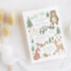 Kön Neutral babyduschinbjudan med handillustrerad skogsgård med träd, blommor, svampar, björn, boj, tvättbjörn, ekorre, hjort, fågel, räv och hedgehog.