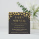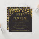 En glamorös illustration av gyllene stjärnor på en svart bakgrund. Uppgifterna om party är skrivna i modern form.