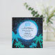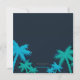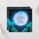 En snygg design som är perfekt för en kvällsstrandfest. Den djupblåa bakgrunden har subtil text som lyder "Beach Party" och har stjärnor, palmer och en rundel för att hålla din personliga text.
