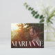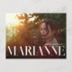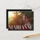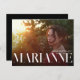 Redigerbart färg och typsnitt för namn och skola, studenten. Anpassa baksidan som ett meddelande om framtida planer eller en inbjudan till studentfest.