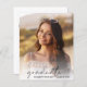 Elegantens budgetvänliga inbjudan till studentfest med gradens foto överlagrad med "student" i ett modernt skript och deras namn och klassår i enkel typografi. På baksidan lägger du till informationen om grad party.