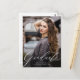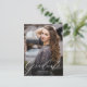 En inbjudan från studenten på elegant och modern dubbla med ett vackert kalligrafiskt skript. Den här enfotodesignen visar ditt favoritfotot. Kortets baksida innehåller ytterligare fyra foton och utrymme för information om en studentfest eller något annat meddelande som du vill lägga till.