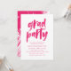 Inbjudningar till snyggt och modern studentfest som innehåller ett handmålat penselteckensnitt för trendig och penseldrag för shock rosa. Anpassa chic studentfest inbjudan med information om anpassningsbar studenten för en titt som imponerar på gästerna!