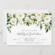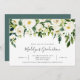 Inbjudan till blommigt av chic innehåller en gräns av elfenben ro och vita ponnyer med lush botaniskt löv och grönt. Anpassa med din studentfest i moderna handskrivna skript och traditionella sans serif-bokstäver. Inbjudningar går tillbaka till rik juwel tonad jasper-grönt.