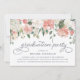 Den moderna inbjudan till studentfest av vattenfärgen i blommigt innehåller en gräns av ro, ponnyer och eukalyptus i skuggor av rosa, persikor, kräm och grönt. Anpassa med önskad studentfest-inbjudan med fält-mallen.