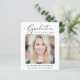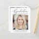 Elegantens budgetvänliga studenten-meddelande och partiinbjudan med texten "Studenten Firande" i elegant och typografi, hennes foto och hennes namn, skolår och klassår i enkel modern typografi. På baksidan lägger du till ytterligare ett foto och information om studentfesten.