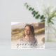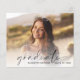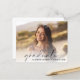 Elegantens budgetvänliga inbjudan till studentfest med student överlagrad med "student" i ett modernt skript och deras namn och klassår i enkel typografi. På motsatt sida lägger du till information om studentfesten.
