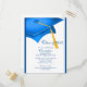 Starta från högerna med evenemanget med trendig- och snyggtens blå gradershölje med blått gräns och vit studentfest efter kort-inbjudan. Perfekt studenten inbjuder till högskoleexamen i studenten eller högskoleexamen. Fyll bara i informationen och lägg till fotot så är du redo att gå. Besök vår butik på www.celebrateitgraduations.com om du vill ha en mängd olika studentkort!