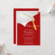 Starta från högerna med trendig och snyggt med vit graderingshölje med vit gräns på en inbjudan till studentfest med röd bakgrund. Perfekt studenten inbjudan till högskoleexamen i studenten eller högskoleexamen. Fyll bara i informationen och lägg till ditt foto och du är redo att gå. Besök vår butik på www.celebrateitgraduations.com om du vill ha ett stort antal studentkort! Bilder, listigt roliga dockor