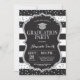 Inbjudningskort för Studentfest Black och Silver Glitter. Konfetti Silver Glitter. Svarta och vita Rand. Utskriftsformat digitalt.