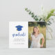 Den här inbjudan från studenten innehåller ett enkelt svart-vitt tema med blått lock och guld-tassel. Lägg till ett foto och anpassa texten på framsidan och baksidan om du vill ha all information om studentfesten.