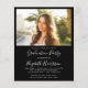 Elegantens budgetvänliga utlysning av svarta studenten och partiinbjudan. Gradens foto fyller kortets framsida, överlagrad med "Student" i ett snyggt-skript. Under undersidan lägger du till namn, skola och klassår. På baksidan lägger du till ytterligare ett foto och information om studentfesten i en vanlig vit text.
