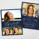 En enkel och budgetvänlig inbjudan till mörk blått studentfest med en 3 fotokollage av graden överlagrad med "Student" i ett elegant vitt skript och deras namn, klassår och skola i modern vit skrift. Lägg till ytterligare ett foto på baksidan och anpassa informationen om party. Den här pappra för halvljussken i budgeten är ungefär lika viktig som fotot pappert - det finns också en större version av det traditionella kortet lagrar (meddelande oss för länken).