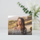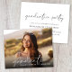 Elegantens budgetvänliga inbjudan till studentfest som innehåller gradens foto överlagrad med "student" i ett modernt vitt skript i chicen och deras namn och klassår med enkla vita bokstäver. På baksidan lägger du till information om studentfesten. Den här pappra för halvblank i budgeten är ungefär lika viktig som fotopapper. Det finns också en större version av det traditionella kortet lagrar 5 x 7 (meddelande om länken).