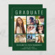 Modern, elegant och budgetvänlig grönt studenten-annonsering och partiinbjudan med "STUDENT" överst i stort vitt brev, en sju fotokollage och deras namn, klassår och skola i vanlig vit typografi. Lägg till studentfesten i bakgrunden.