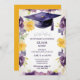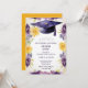 Inbjudan visar en fin blandning av mjuk lavender och lilac-toner, som framkallar en känsla av elegans och feminitet. Vattenfärgen dansar på ett snyggt sätt över kortet och överför det med en luft av stollig och charm. En central punkt i utformningen är en skarp skildring av en panttavla som är försedd med delikata accenter från blommigten, som symboliserar höjdpunkten för den akademiska framgången som är sammanflätad med den vackra tillväxten och bedriften. Dessa blommigtar tillför inbjudan en aning femininitet och nåd, och firar student resa med stil och sofistikering. Mjuka ledtrådar av blekens gult blandas sömlöst med lavendelpaletten och ger värme och radians. Denna subtila kontrast lägger till djup och dimension till inbjudan, vilket skapar en fängslande visuell harmoni som återspeglar studentens pulserande anda. På baksidan av inbjudan finns en mjuk bakgrund för gulten en serverarbetsyta för personlig eller händelseinformation. Oavsett om du lägger till anpassningsbar med text för att förmedla viktig information eller lämnar tom för en minimal beröring, erbjuder detta utrymme mångsidighet samtidigt som det bibehåller inbjudningens sammanhängande utformning. På det hela taget lyser denna inbjudan ut sofistikering och kvinnlighet, och lovar en minnesvärd församling att fira en anmärkningsvärd ung kvinnas prestationer när hon ger sig in på nästa kapitel i livet.