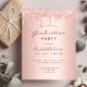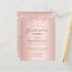 Ett giftigt, feminin och glamoröst inbjudningskort för 2025 (eller vilket år som helst) studentfest. Glamorerat med elegant och modern bakgrund i ro guld och dekorerat med ro guld faux glitter droppar, färgdroppstift. Mall för information om namn och party. Texten Studenten och namn är skrivna med ett modernt, hanterat stil-skript. Mörk ro guld färgad text. Baksida: Bakgrund och droppar i ro guld och gliter. Tips! Om du inte vill att det ska se ut som ett vykort klickar du på anpassa, går till baksidan och tar bort delaren och lägger till frimärke.