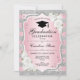 Inbjudan till studentfest. Funktioner rand, typsnitt för skript, vit ros, tassel och konetti. rosa av elegant med Faux glitter silver. Perfekt för en elegant som glam chic firande.