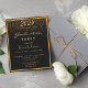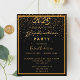 En modern och snyggt inbjudan till en studentfest. Glamorös med elegant och modern svart bakgrund och gyllene konfettregn. Med faux guld ram. Mall för information om namn och party. Texten Studenten och namn är skrivna med ett modernt, hanterat stil-skript. Golden brev. Baksida: svart bakgrund färg, konetti
