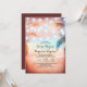 Absolut romantisk elegant och en unik inbjudan till strandbröllop med hängsträng av ljus på handflatan träd. Tropiskt och modernt bröllop på stranden inbjudan med solnedgång - kväll i korallets och havets blå nyans. Perfekt för destinationsön bröllop också.