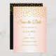 Elegant guld metalliska utseende konfronteras med svart och guld ro sparar datuminvigningskortet. Luxury guld konetti på svarta och guld ro Spara datumkorten.