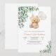 Fira din speciella dag med denna söta teddybjörn-baby shower-inbjudan med en söt björn som håller ballonger och omges av eleganta gröna accenter. Perfekt för att hedra blivande föräldrar, denna charmiga design blandar fantasifull illustration med modern stil. Idealisk för baby shower-fester, den ger ett varmt och festligt sätt att inbjuda nära och kära. Anpassa enkelt med dina evenemangsuppgifter för att skapa en minnesvärd souvenir som gästerna kommer att värdesätta.
