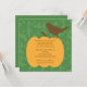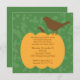 Starta högerna från Thanksgivingen till hösten Party med vår Thanksgiving bjudning med en vacker fallpumpa med en fågel som sitter ovanpå med en bakgrund från grönten löv. ©Cocoa Studio