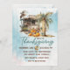 Beach Thanksgiving bjuds in på stranden med handflatan träd och sand med pumpor och blommor.