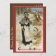 Vintage-illustration Thanksgiving-bild med en pilgrimkvinna i ett snöigt fält med texten "Thanksgiving Day Greetings."