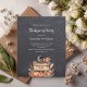 En faux rustic chalkboard som bakgrund. Dekorerad med pumpor, köksredskap, ett rustiskt trämärke med texten: Thanksgiving Feast. Anpassa och lägg till information om party. 1 lakan = 1 inbjudan tryckt kant till kant.