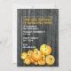 En Thanksgiving middagsinbjudan med baksida på framsidan och baksidan. Främre egenskaper som illustrerar en hög med små och stora pumpor i grund med effekten av flippad färg. Anpassa Orange och vit text med information om tillfälle.