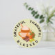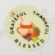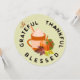 Ett litet thanksgiving-inflygningskort för familj och vänner. Du får det på ett klistermärke, underlägg,