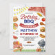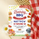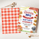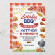 Tänd roliga stämningen med denna färgglada födelsedagsinbjudan till BBQ - perfekt för en bakgårdsfest för att fira ditt lilla barns stora dag! Denna lekfulla design har vattenfärgillustrationer av klassiska grillfavoriter som hamburgare, korvar, majs på kolv, vattenmelon och en grill, alla stiliserade runt en röd ginghamsceneri för picknick. Personligad med ditt barns namn och festdetaljer, sätter denna inbjudan tonen för en härligt rolig sommarfirande.