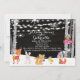 Fira flicka! Rustiska vinterscener med svart bakgrund av trämaterial, elegant, modernt och vinter underlands dusch av party med snöflingor, snö, snöre ljus, skogsdjur och björk träd. Skogsdjuren hjort, kanin, ekorre, räv, fågel ligger i snö. Det finns en uggla i träd med en rosa banderoll som lyder: "Det är en flicka!" Perfekt för firande och babyduschar på vintern. Anpassa all party-information till anpassadet.