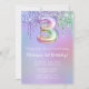3:e födelsedagspresensinbjudan till lila rosa glitter kör 3:e födelsedagsbjudandebjudan till en 3-årig flicka med moderna skript- och roligt-folie-ballonger.