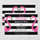 Roligt rosa flamingos och talesättet "Låt oss Flamingle" accentuerar inbjudan till trendig Förlovningsfest på en svart och vit strimlad bakgrund, skapar perfekten för en sommar-BBQ, luau, samlas vid bassäng eller flamingo temakväll. Koordineringsobjekt finns i Trendiget Flamingo Bröllop Collection. Om du behöver hjälp med att anpassa den här inbjudan eller om du behöver ytterligare samordningsposter kontaktar du oss på prettyfancyinvites@gmail.com med din begäran.