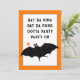 Lustigt Halloween party inbjudan med bord tennis tecknad med ett sött fladdermus som spelar ping-pong.