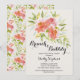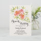 Vackra rosa- och rödfärgblommor och elegant grönt på blekens grått-bakgrund belyser brunch och bubblande inbjudningskort för möhippa. MATCHING-objekt i vår butik.