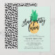 Inbjudan vänner och familj till din studenten luau med inbjudningskort i studentfesten i roligt. Studentfest luau-inbjudningarna innehåller en vattenfärgsanananas, myntbakgrund, trendigets skriptteckensnitt, platshållare för anpassningsbarna och en fet svart och vit punkt mönster på baksidan av inbjudan.