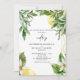 Vattenfärgslemonerna och inbjudan till tropisk bröllop om blomma. Modern.
