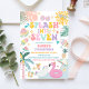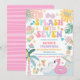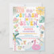 Gör vågor med denna färgglada tropiska poolparty-födelsedagsinbjudan, perfekt för barn som firar en sommarens höjdpunkt! Med lekfulla illustrationer av glass, popsicles, vattenmelon, flamingo-flottar, palmer och solsken sätter denna design tonen för en rolig fest. De livfulla pastellfärgerna och de fantasifulla teckensnitten skapar en glad, strandliknande stämning som gästerna kommer att älska. Perfekt för poolpartyn, sommarfödelsedagar eller tropiskt tema-arrangemang, är denna inbjudan både stilren och festlig.