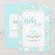 Inbjudan till turkos babyskor. Foliage