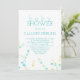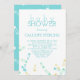 Cute babyduschinbjudan med turkostext och stift i grönt, gult och turkos.