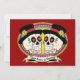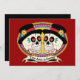 Två glada sockerkranier brudgummar med en banderoll under som säger "Sant kärlek varar för evigt". Du kan ändra bakgrundsfärgen och ändra texten för att anpassa denna inbjudan. Denna inbjudan gör också ett fantastiskt "Spara datum"-kort!