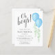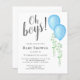 Den här budgeten, den dubbla pojkens babyinbjudning är dekorerad med vattenfärgsblåa ballonger och grönt eukalyptus och säger "Oh Boys!" Enkelt anpassade. Använda Verktyg i Design om du vill ändra texten storlekt, stil eller färg. Eftersom vi skapar vår teckning kommer du inte att hitta just den här bilden från andra designers. Ursprunglig vattenfärg © Michele Davies.