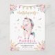 Inbjudan till Unicorn Magic Rosa Blommigt Födelsed Vykort