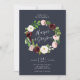 Elegantens bröllopsinbjudningar i blommigten har en utandning av vattenfärgade blommor i rosa, elfenben och burgundmarsala, som är sammanflätade med botaniskt löv och löv i lush grönt och omringar namn i handskriven chic på rikens midnattblå bakgrund. Anpassa med din bröllop-information under.