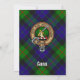 Klan Gunn vapensköld-bricka omgiven av ett band och ett låsbeslag över tartanbakgrunden. Anpassningsbar på båda sidor.