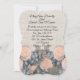 Vår bröllop bjuder in på en linne-look-bakgrund med Blue hydrangea och vit silke ro. Inbjudan till elegant Shabby chic för party med Vår blommor tema.