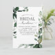 Grey Botanical Watercolor Vår bröllop Möhippa Luncheon Bjuder på vit bakgrund - innehåller vacker och elegant manustypografi med moderna botaniska löv och grön för att speciella Briden ska vara firande.